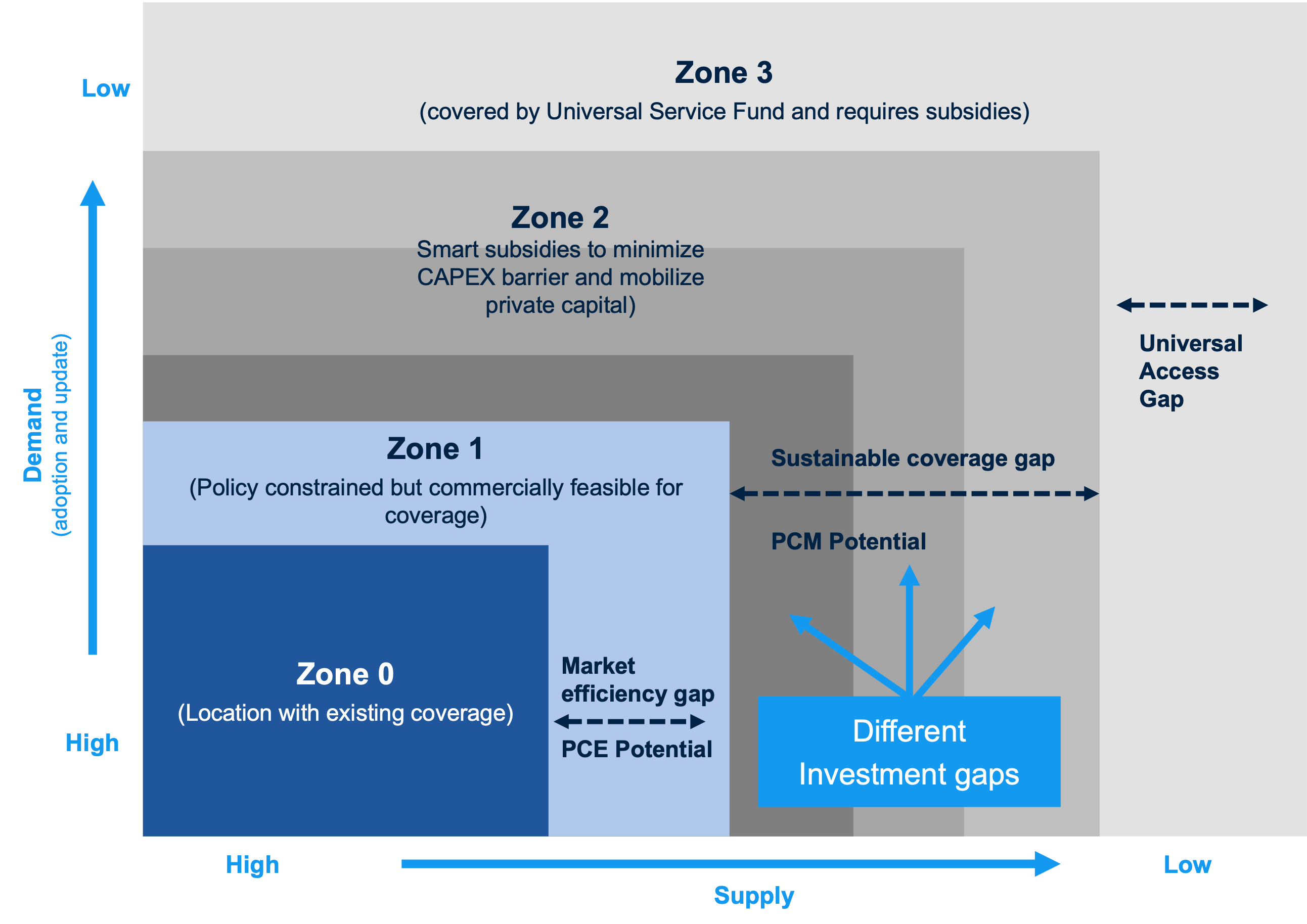 Understanding these zones clarifies where the private and public sectors can play a role in expanding digital access.
